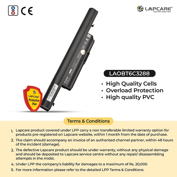 Lapcare LAOBT6C3288 6-Cell 4000mAh, Laptop Battery, Black
