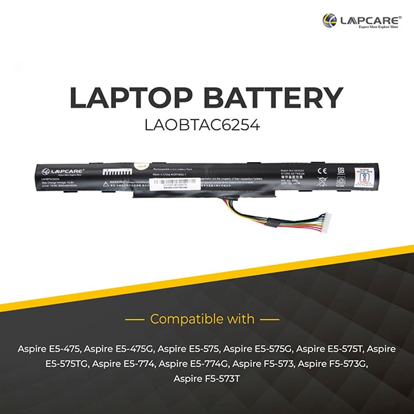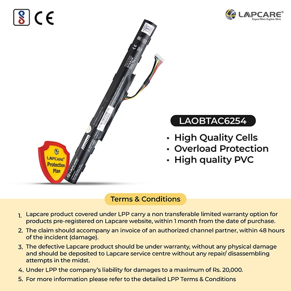 * This Lapcare LAOBTAC6254 Rechargeable Battery image is for illustration purpose only. Actual image may vary.