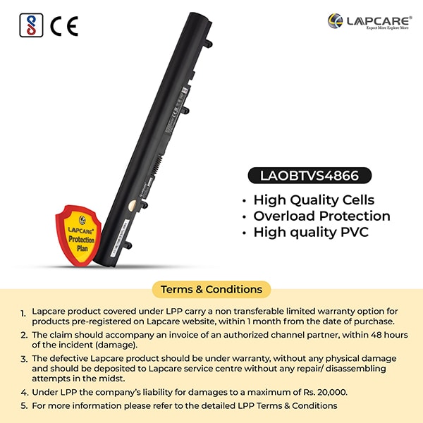 * This Lapcare LAOBTVS4866 Rechargeable Battery image is for illustration purpose only. Actual image may vary.
