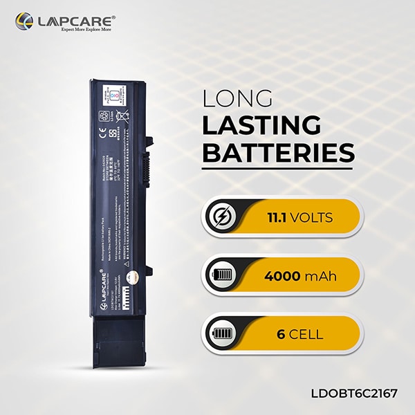 * This Lapcare LDOBT6C2167 Rechargeable Battery image is for illustration purpose only. Actual image may vary.
