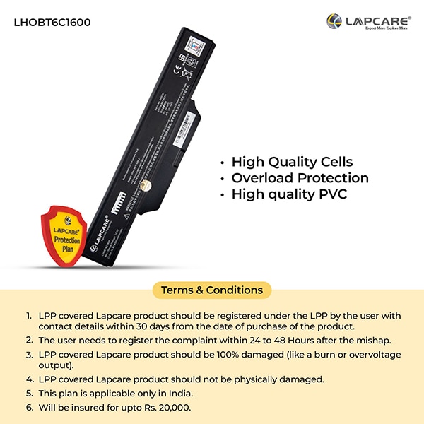 * This Lapcare LHOBT6C1600 Laptop Battery image is for illustration purpose only. Actual image may vary.