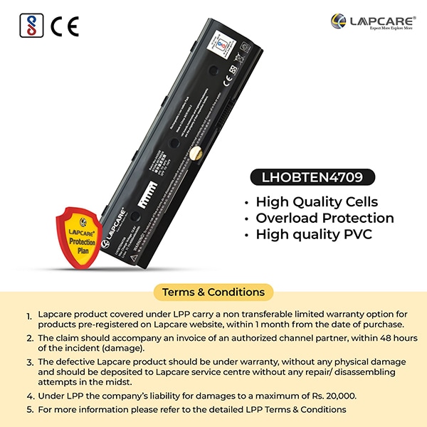 * This Lapcare LHOBTEN4709 Laptop Battery image is for illustration purpose only. Actual image may vary.