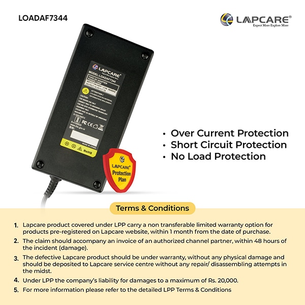 Lapcare LOADAF7344 Laptop Power Adapter with Over Current Protection, Black