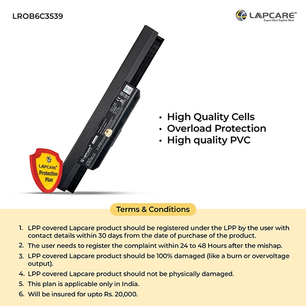 * This Lapcare LROB6C3539 Laptop Battery image is for illustration purpose only. Actual image may vary.
