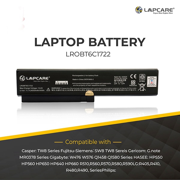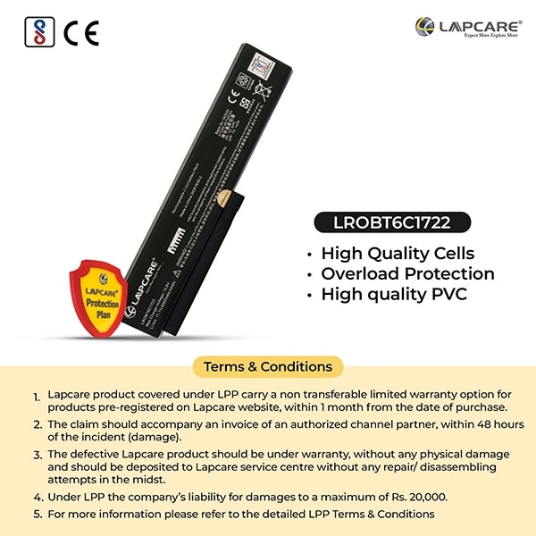 * This Lapcare LROBT6C1722 Laptop Battery image is for illustration purpose only. Actual image may vary.