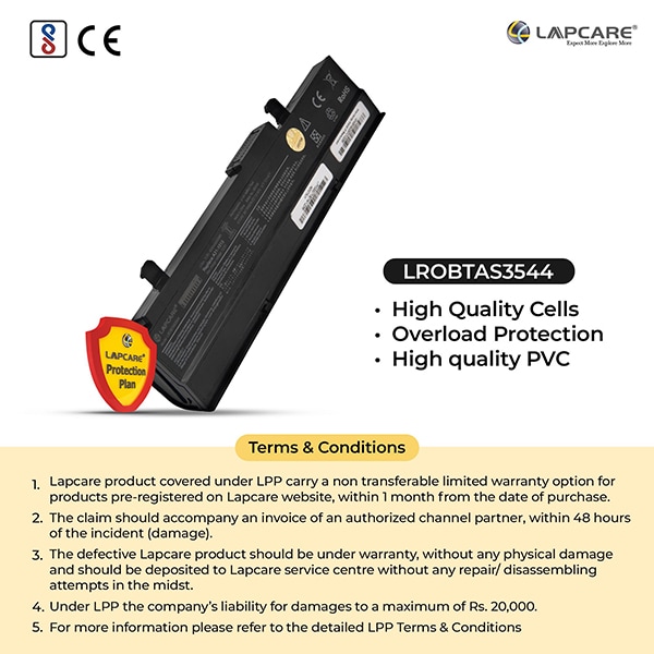 * This Lapcare LROBTAS3544 Laptop Battery image is for illustration purpose only. Actual image may vary.