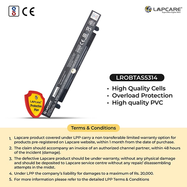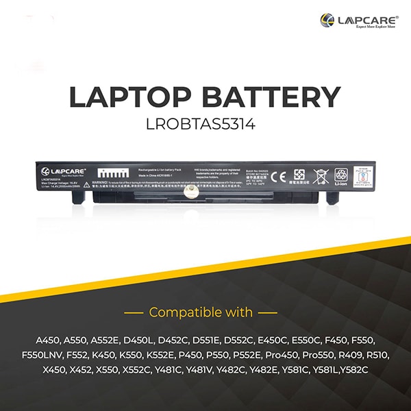 * This Lapcare LROBTAS5314 Laptop Battery image is for illustration purpose only. Actual image may vary.