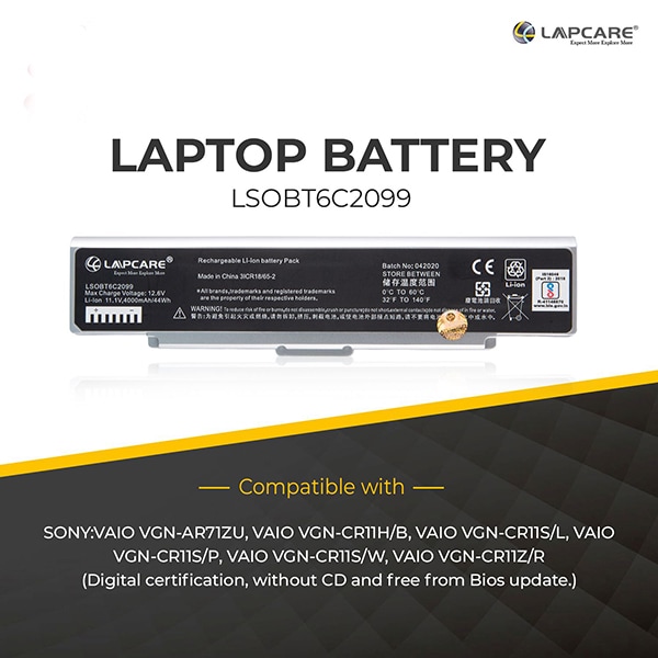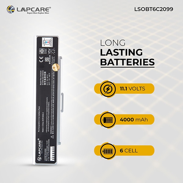 * This Lapcare LSOBT6C2099 Laptop Battery image is for illustration purpose only. Actual image may vary.