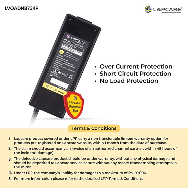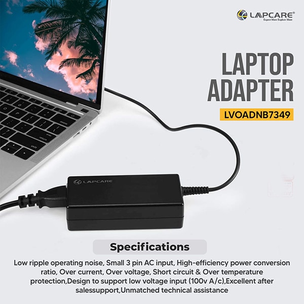 Lapcare LVOADNB7349 Laptop Power Adapter with Over Current Protection, Black