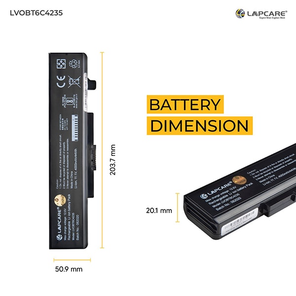 * This Lapcare LVOBT6C4235 Laptop Battery image is for illustration purpose only. Actual image may vary.