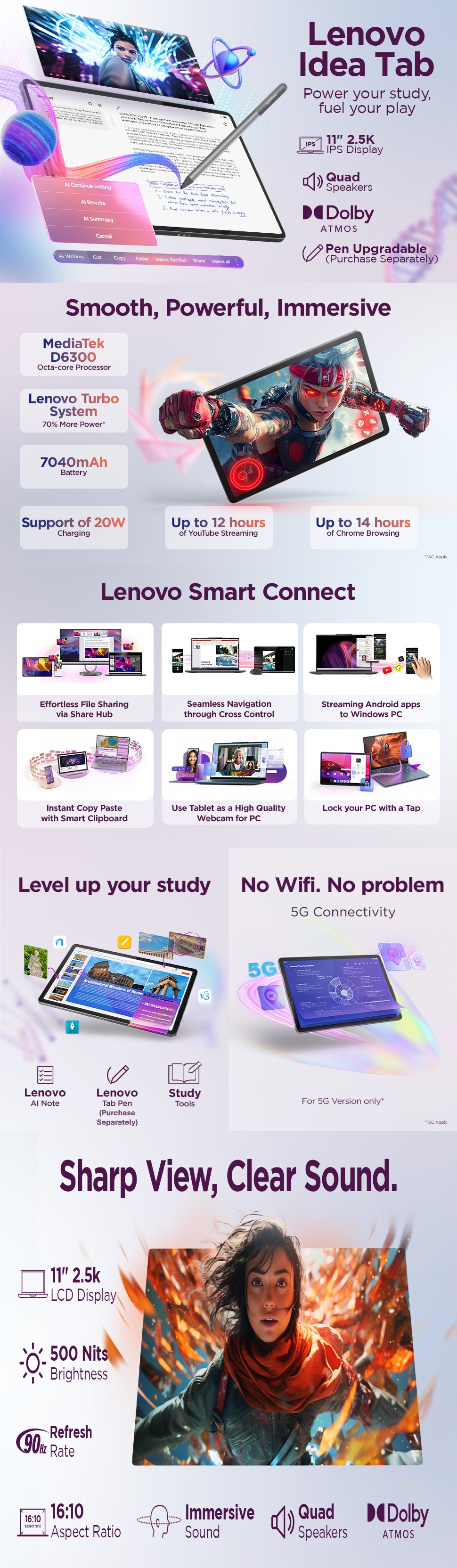 Lenovo Idea Tab 27.94 cm (11 inch) WiFi + 5G Tablet, 256 GB, 8 GB RAM, Grey, ZAFM0708IN