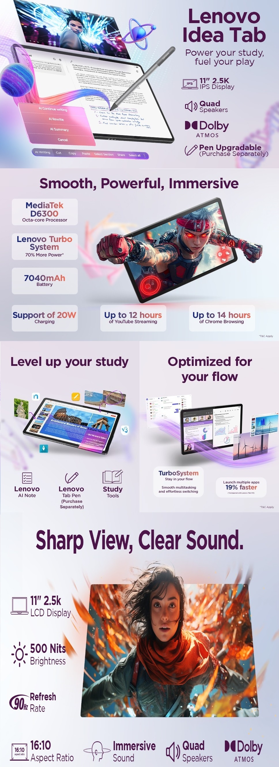 Lenovo Idea Tab 27.94 cm (11 inch) WiFi Tablet, 256 GB, 8 GB RAM, Grey, ZAFR0900IN