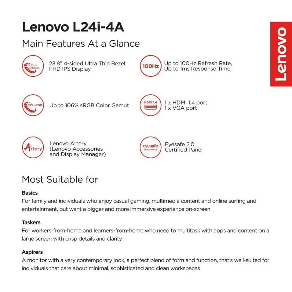 Lenovo L Series 67BCKAC6IN 60.45 cm (23.8 inch) Monitor