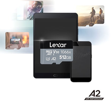 With Application Performance Class 2 (A2) rating, the Professional 1066x microSD UHS-I Card SILVER Series is also great for use with applications on your Android smartphone. Quickly run and store apps directly on the A2 memory card using an Android Adoptable storage enabled device.