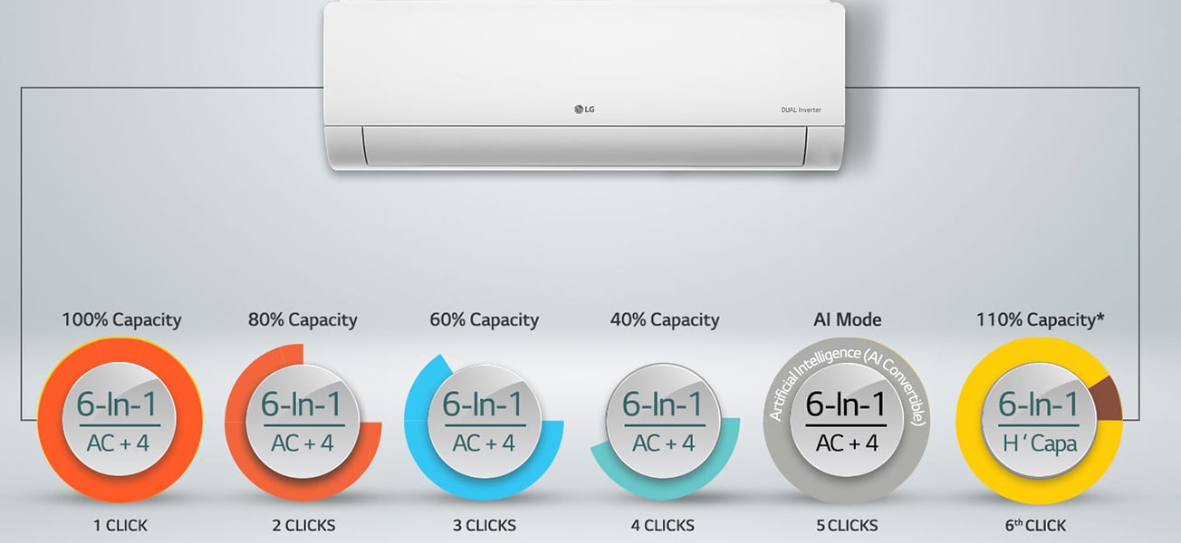 With AI Convertible 6-in-1 user gets a flexibility to increase or decrease cooling capacity as per requirements. At the same time with its Artificial Intelligence convertible mode and inbuilt sensors, the air conditioner will give perfect cooling by automatically analyzing current conditions and inputs given by the sensors.