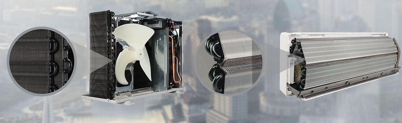 Special Ocean Black Protection applied on Copper tubes of both Indoor & Outdoor unit provides exceptional durability for the air conditioner in typical Indian regions affected from sand, salt, industrial smoke and pollutants.