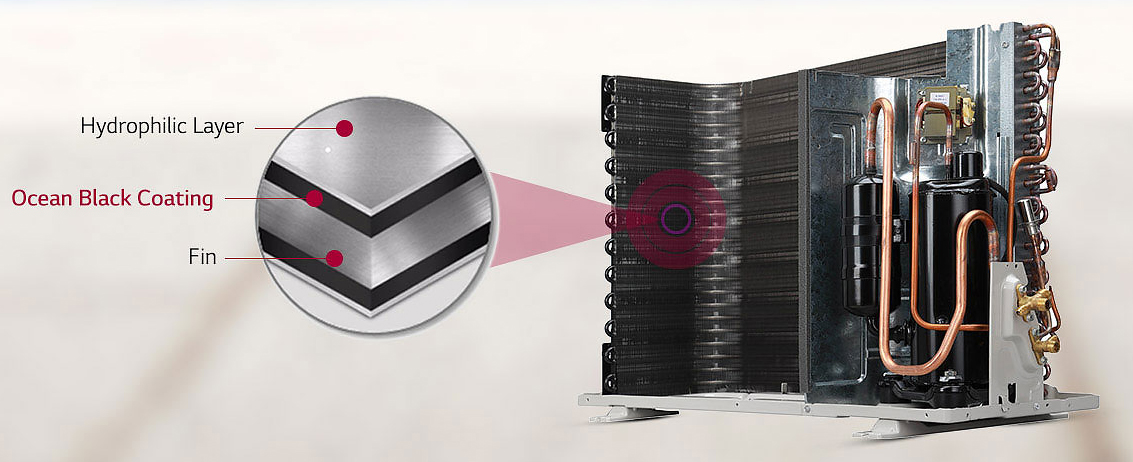 LG DUALCOOL ACs comes with Ocean Black Fin to offer unbeatable protection against dust, smoke and chemicals presents in environment and also offers protection against fin corrosion which in return provide better cooling and cost saving.