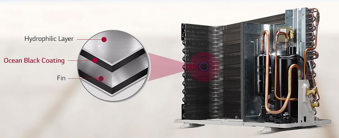 LG DUALCOOL ACs comes with Ocean Black Fin to offer unbeatable protection against dust, smoke and chemicals presents in environment and also offers protection against fin corrosion which in return provide better cooling and cost saving.