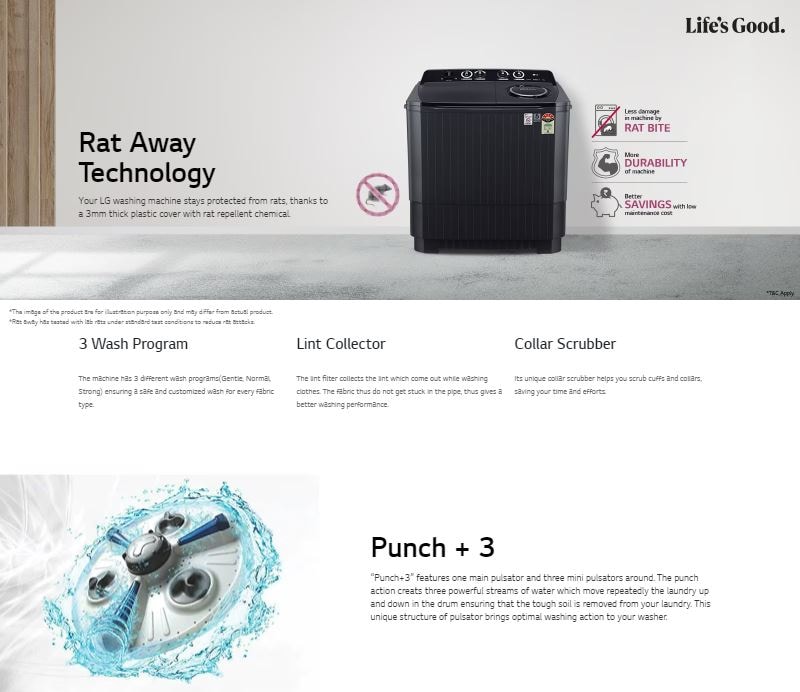 LG 11.5 Kg Semi Automatic Washing Machine (P115ASKAZ, Middle Black)
