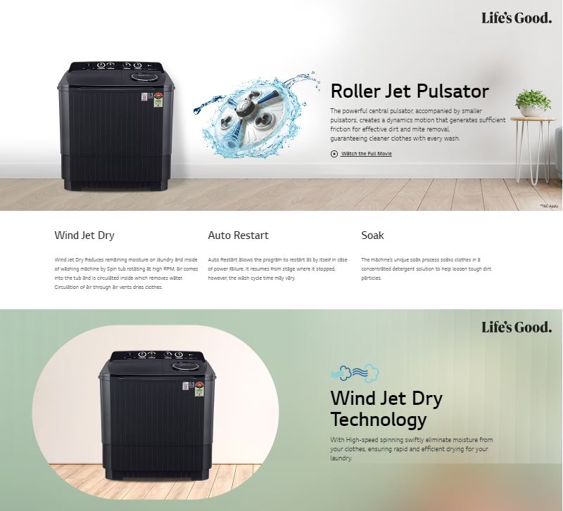 - Roller Jet Pulsator with Soak: Better wash with effective scrubbing