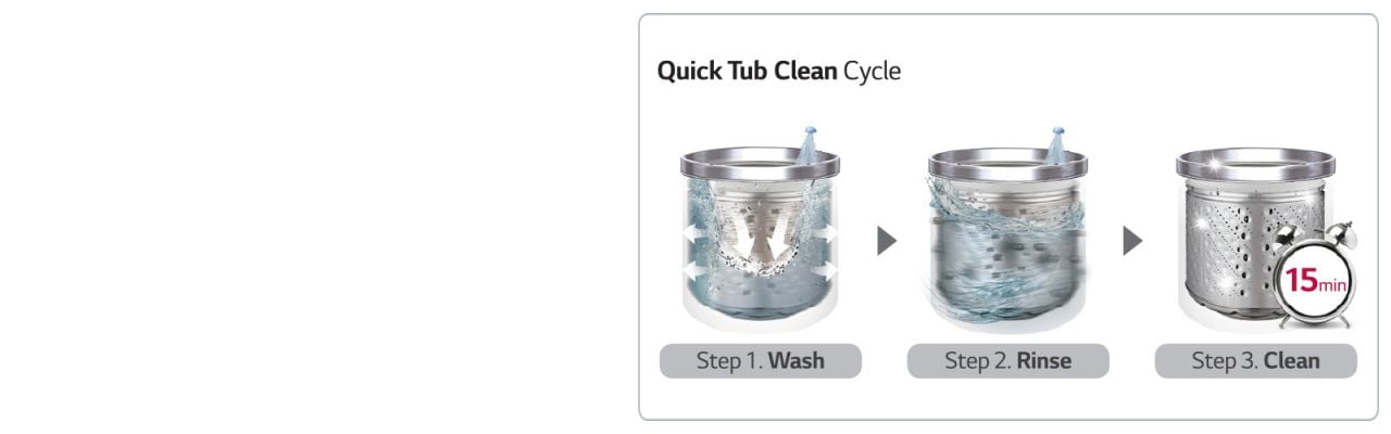 Whenever you're about to begin or finish laundry, simply one touch of Quick Tub Clean Course helps to clean the tub before and after washing for daily use.