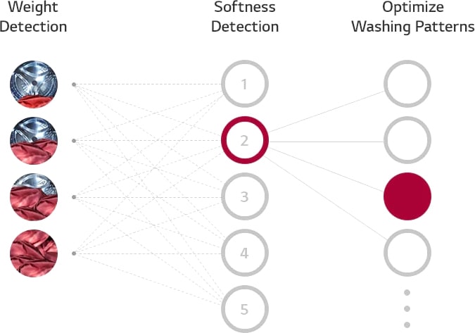 The AI DD detects not only the weight, but also senses softness of fabric, and it chooses the optimal motions for the fabric by itself.