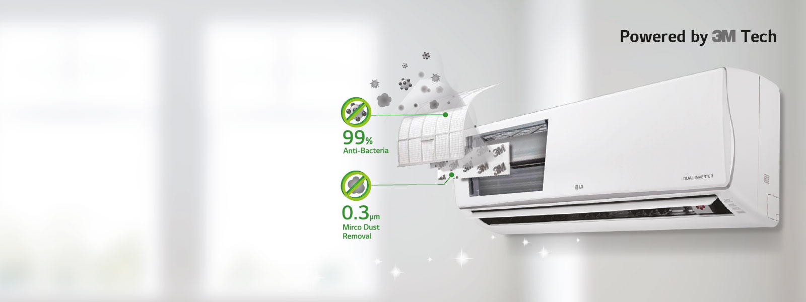 The air inside your home contains dust and allergens. These can lead to various respiratory problems as well as allergies. But LG air conditioners come with Double Filtration System to fill your home with clean and hygienic air.