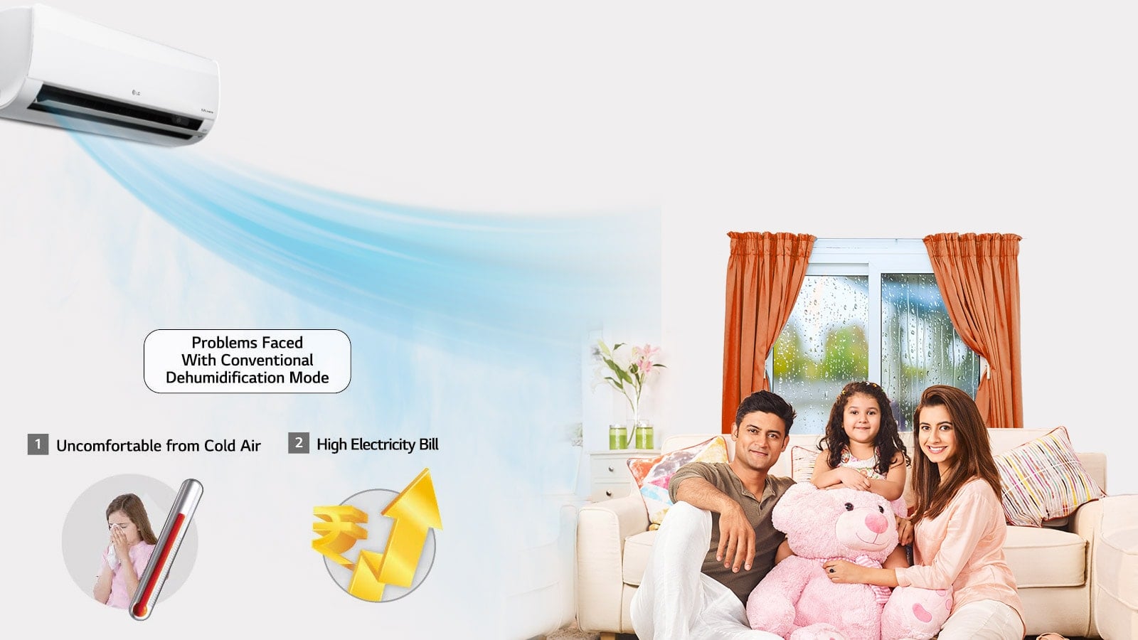 The Monsoon Comfort technology provides the right cooling during high humidity and monsoon season. As compared to the normal dehumidification mode in other air conditioners, the monsoon comfort technology prevents overcooling and saves energy up to 36.4%.