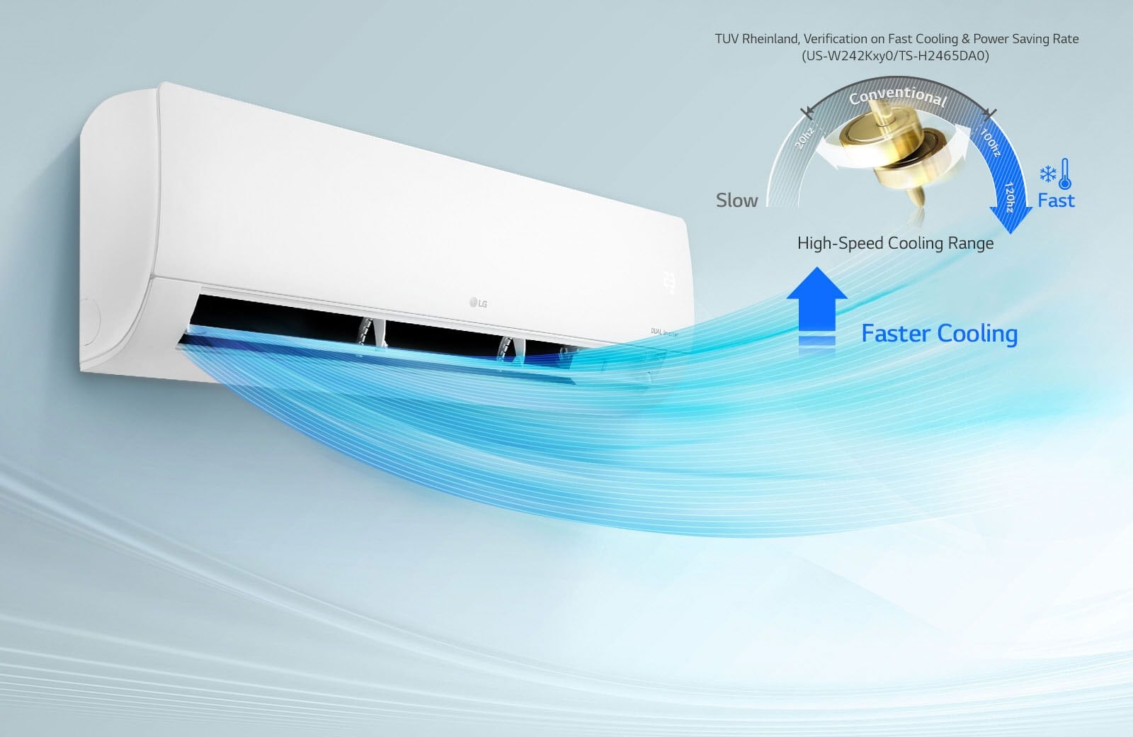 LG’s Dual Inverter Compressor solves improper, cooling and noise problems, resulting in an air conditioner that cools faster, lasts longer, and runs quieter.