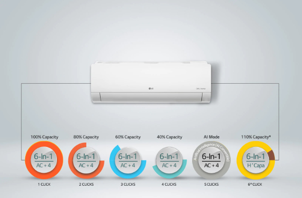 AI Convertible 6 in 1 CoolingWith AI Convertible 6 in 1 user gets a flexibility to increase or decrease cooling capacity as per requirements. At the same time with its Artificial Intelligence convertible mode and inbuilt sensors, the air conditioner will give perfect cooling by automatically analyzing current conditions and inputs given by the sensors.