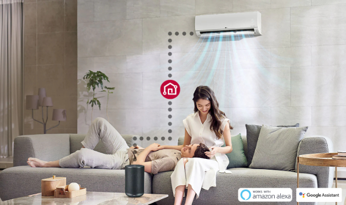 Voice ControlLG DUALCOOL ThinQ Models are compatible to your smart phones and AI Speakers such as Google Assistant & Amazon Alexa. Now monitor & control your LG AC any time completely touch free.