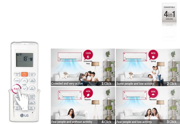 Convertible cooling makes changes to air conditioner as and when required, the varied modes ascertain that optimum usage of energy and limits AC's capacity from 40% to 80%, Saves up to 57% of energy