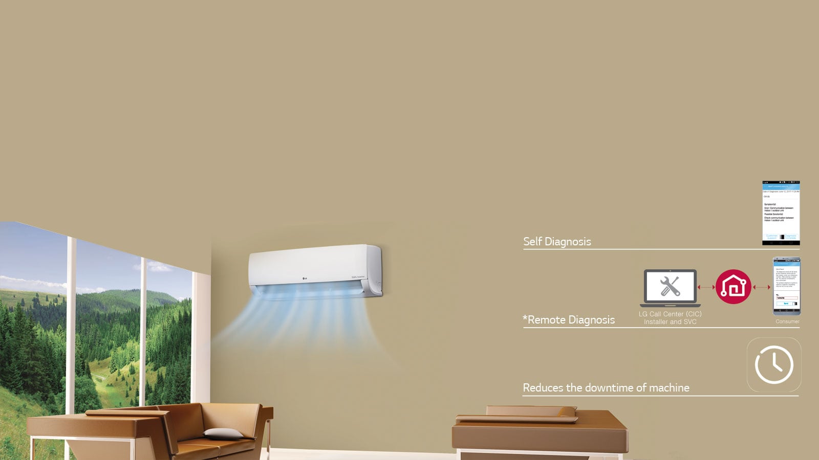 LG Air Conditioner are designed to detect low refrigerant levels which can leave the room hot & uncomfortable.
