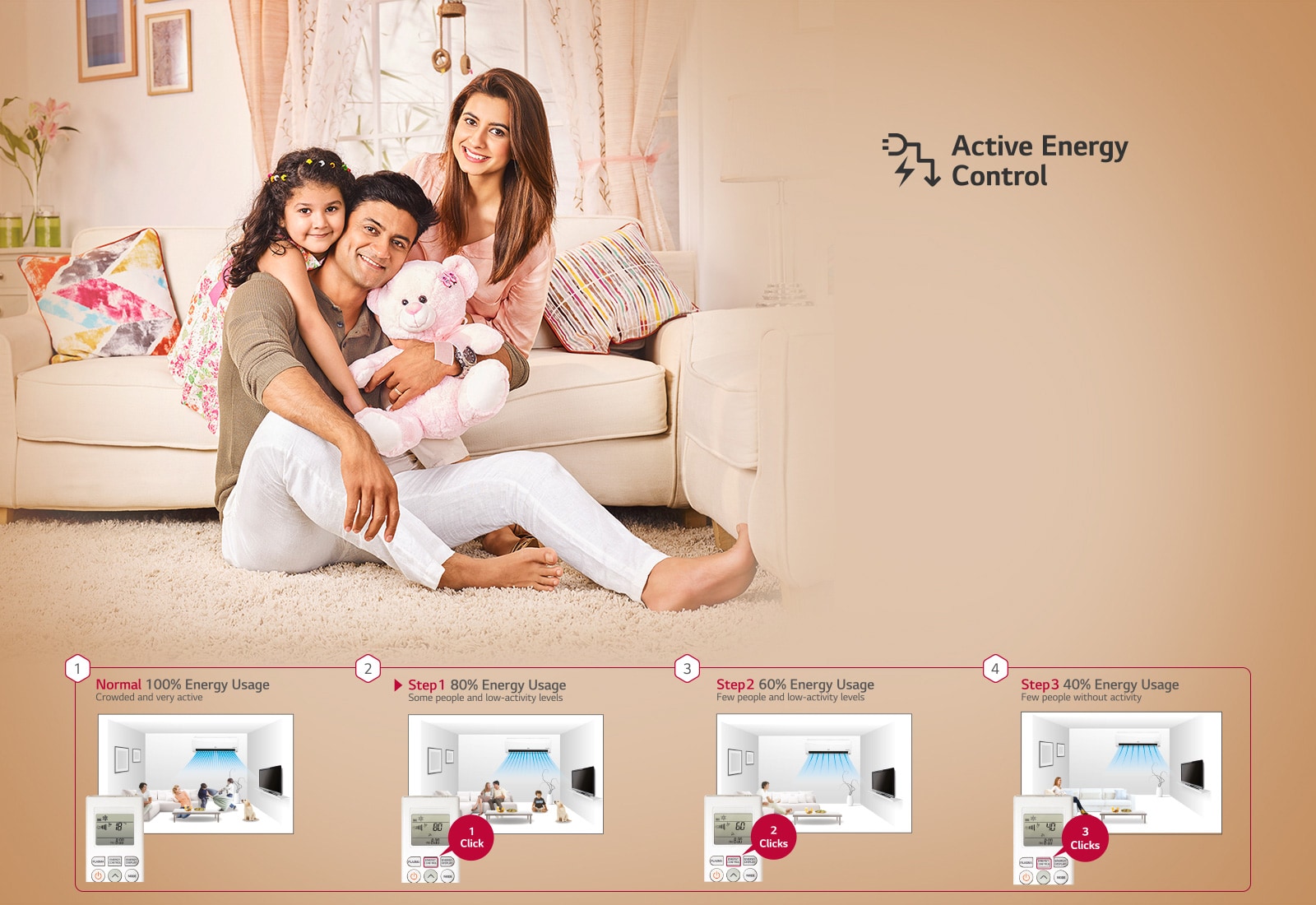 LG Air Conditioners avoid these costs and save energy by taking advantage of its Active Energy Control. This efficiently limits power consumption from 40% to 80% of normal usage and saves up to 57% energy.