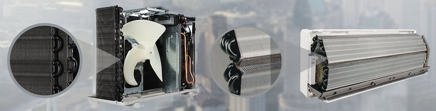 Special Ocean Black Protection applied on Copper tubes of both Indoor & Outdoor unit provides exceptional durability for the air conditioner in typical Indian regions affected from sand, salt, industrial smoke and pollutants.