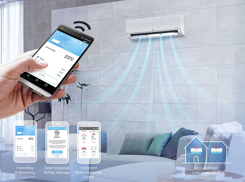 LG DUALCOOL ThinQ Models are compatible to your smart phones and AI Speakers such as Google Assistant & Amazon Alexa. Now monitor & control your LG AC any time completely touch free.