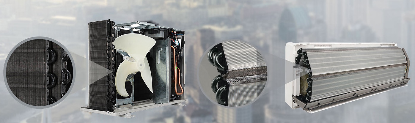 Special Ocean Black Protection applied on Copper tubes of both Indoor & Outdoor unit provides exceptional durability for the air conditioner in typical Indian regions affected from sand, salt, industrial smoke and pollutants.