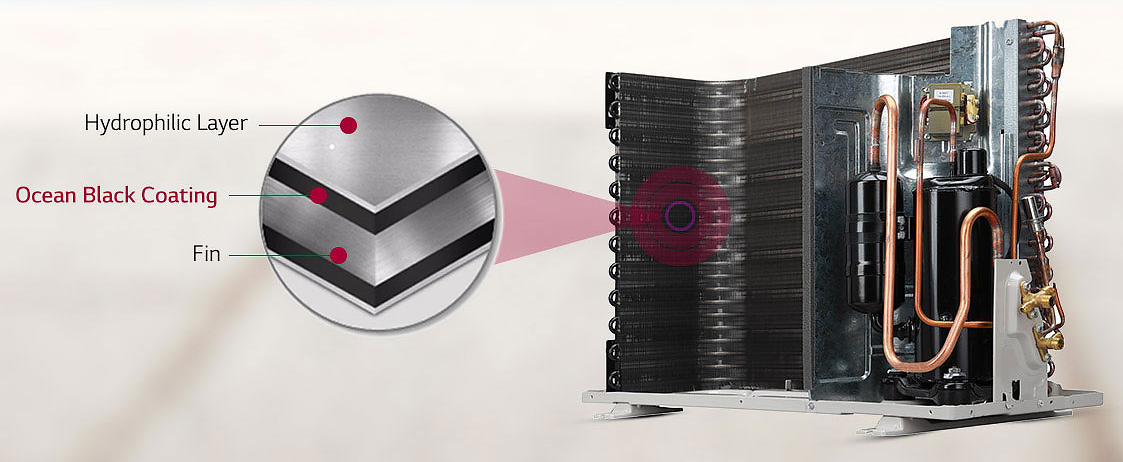LG DUALCOOL ACs comes with Ocean Black Fin to offer unbeatable protection against dust, smoke and chemicals presents in environment and also offers protection against fin corrosion which in return provide better cooling and cost saving.