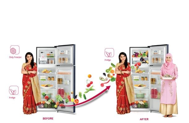 The revolutionary technology helps convert the freezer into fridge within 68 minutes. With just one touch, it increases the storage capacity of your refrigerator by 1.4 times.
