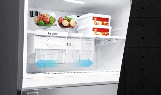 The sliding ice tray can be moved to the left or right to position it in your preferred location.