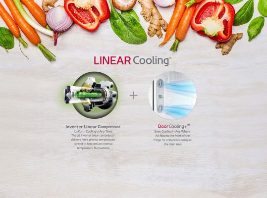 LG Door Cooling+™ makes inside temperature more even and cools the refrigerator 35% faster than the conventional cooling system. This reduces the temperature gap between the inner part and the door side of the compartment; thus letting the food remain fresh for long.