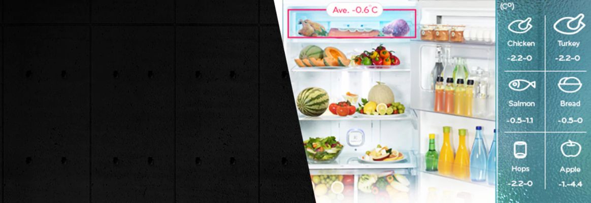 LG Door Cooling+™ makes inside temperature more even and cools the refrigerator 35% faster than the conventional cooling system. This reduces the temperature gap between the inner part and the door side of the compartment; thus letting the food remain fresh for long.