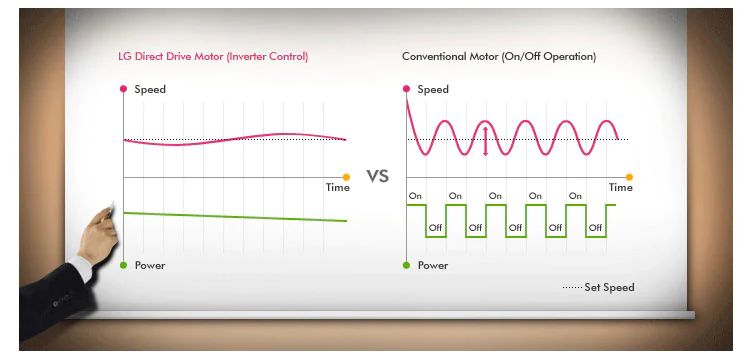 Inverter Control System generates less speed fluctuations and consumes the exact amount of electricity needed at every step. This not only saves you water and energy but also ensures optimum washing performance.