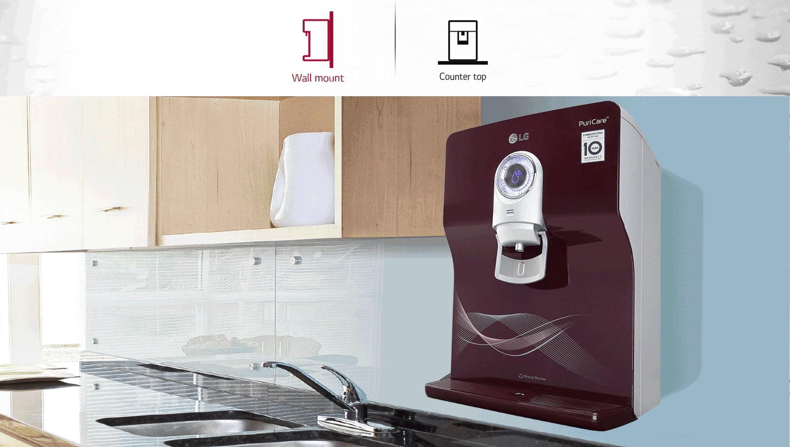 Available to install , the water purifier can either be wall mounted or can be placed on the counter top, depending on your requirement.