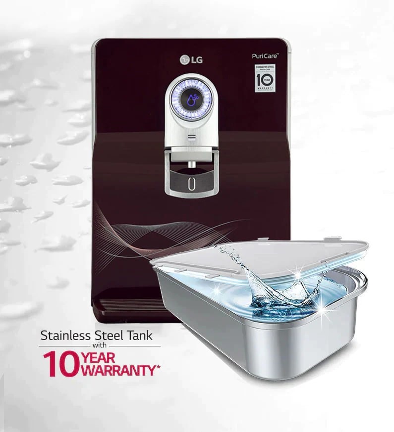 LG Water Purifier comes with Dual Protection Steel Tank prevents odor and bacteria