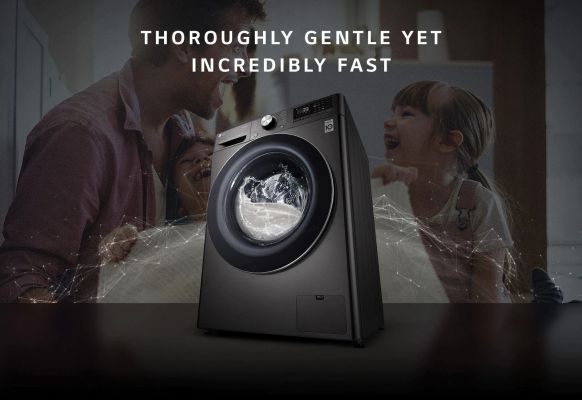 LG 9 Kg Fully Automatic Front Loading Washing Machine with TurboWash Technology, FHV1409ZWB, Black Steel