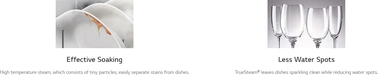 TrueSteam made by boiling water reaches the entire surface of every dish inside the tub resulting in sparkling clean dishes. Pure water particles of steam also help reduce water spots.