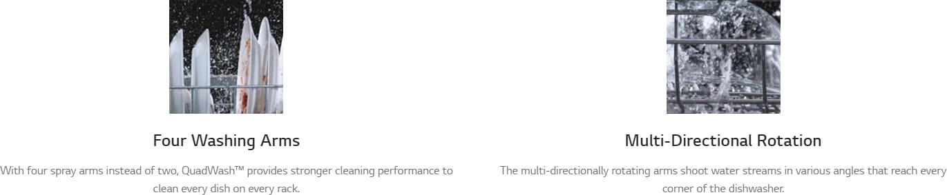 Thanks to Multi-Motion spray arms and high-pressure jets, QuadWash provides maximum coverage to get things clean the first time.
