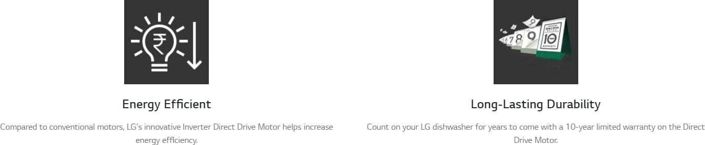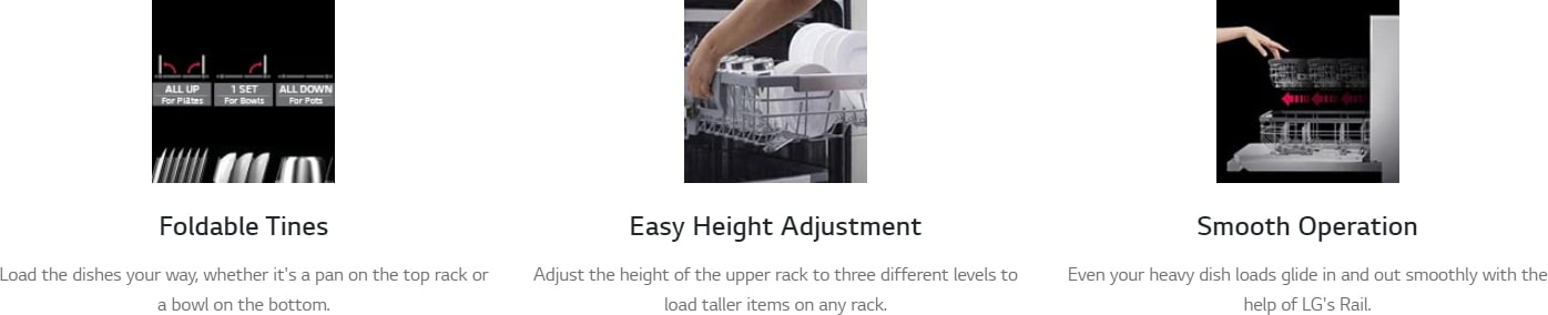 LG's Inverter Direct Drive Motor was designed with quiet in mind. With fewer moving parts, you get reliable performance from one of the quietest dishwashers in its class.