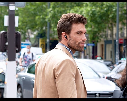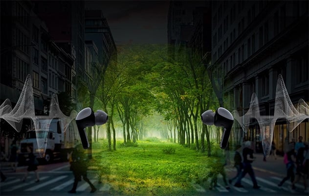A press on your earbuds lets you be fully aware of your surroundings. LG TONE Free FN7's Ambient Sound Mode is useful when you need to have a quick conversation, pick up an announcement on public transportation, or cross a street. It’s a more convenient and safer way to enjoy music.